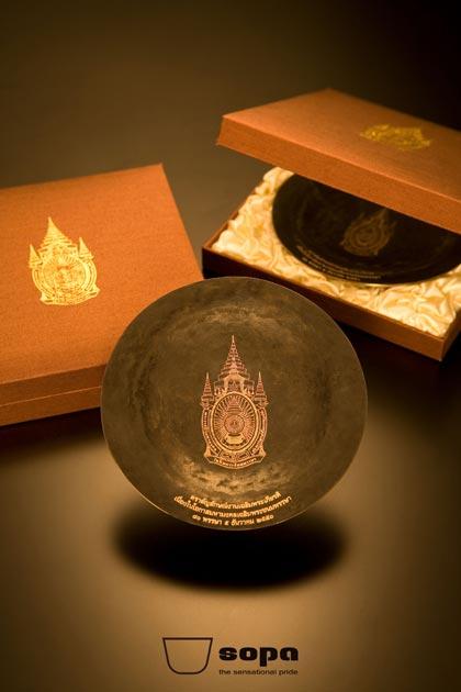 ขันลงหินนี้มาจากส่วนผสม 3 อย่าง คือ ทองแดง สำริดและดีบุก ตอนแรกต้องนำ 3 อย่างนี้มาผสมกันหล่อเป็นน้ำทองก่อน พอทองสุกดีก็เอาไปเทบนเบ้าประมาณ 10 เซนติเมตรแล้วตีแผ่จากแผ่น นั้นให้ขึ้นมาเป็นขัน พอได้ส่วนสูงที่ต้องการก็เอาไปทุบให้เป็นรอยค้อน อันนี้คือเสน่ห์ของขันลงหินค่ะ แล้วก็เอาไปเจียรสีดำออกเพื่อให้เห็นเป็นสีทองของเนื้อแท้ ทองลงหินจะไม่ใช่ทองเหลือง สีจะต่างกัน ทองลงหิน (BRONZE) สีจะสุกนวล แต่ทองเหลืองสีจะเหลืองเข้มเหมือนสีพระค่ะ (สามารถชมวิธีทำได้ที่ www.sopaworld.com)"