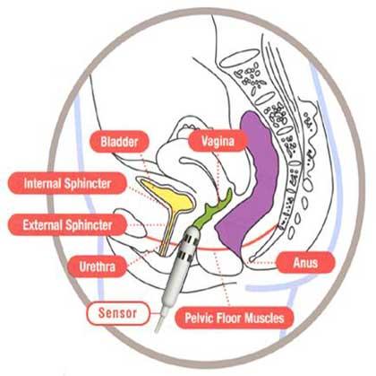 ปัจจุบันได้มีการคิดค้นเครื่องมือที่เรียกว่า “ยูโรสตีม” เป็นเครื่องมือสำหรับประเมินว่า ผู้ป่วยขมิบถูกต้องหรือไม่ ซึ่งผู้รับการตรวจสามารถเห็นผลของการขมิบได้ด้วยตนเองว่าทำถูกต้องหรือไม่ เครื่องยูโรสตีมเป็นอุปกรณ์คล้ายๆ แท่งทรงกระบอก สำหรับใส่เข้าไปในช่องคลอด และมีสายต่อไปยังเครื่องคอมพิวเตอร์ เมื่อขมิบแต่ละครั้งผลจะแสดงเป็นกราฟขึ้นที่หน้าจอแสดงผล ซึ่งมีหลายรูปแบบ ยกตัวอย่างเช่น แสดงผลเป็นสัญลักษณ์รูปปลาโลมากระโดด หากขมิบถูกต้อง ปลาโลมาจะกระโดดขึ้นเหนือน้ำในระดับความสูงที่แตกต่างกันตามแรงขมิบ และถ้าขมิบไม่ถูกต้องปลาก็จะดำดิ่งลงไปใต้น้ำ เป็นต้น หากกราฟแสดงว่าขมิบไม่ถูกต้อง แพทย์ก็จะเข้าไปแนะนำว่าควรทำอย่างไรจึงจะถูกต้อง การประเมินด้วยเครื่องยูโรสตีมนี้ ไม่เจ็บ วัสดุที่ใช้เป็นของเฉพาะตัว และมีอุปกรณ์สำหรับนำกลับไปทำที่บ้านได้ด้วย อย่างไรก็ตาม หลังจากกลับไปบริหารเองที่บ้าน ก็ควรมาตรวจเช็คผลการรักษากับแพทย์เป็นระยะ