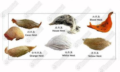 ก็ต้องขอให้ข้อมูลกันหน่อยค่ะว่า รังนกเองก็มีหลายประเภท คือ รังนกแดง ซึ่งมีความเชื่อผิดๆกันมานานว่า สีแดงที่เห็นเกิดจากเลือดของนก แต่จากการศึกษาทางวิทยาศาสตร์ เราได้ทราบกันแล้วว่า สีแดงในรังนกนั้น เกิดจากปฏิกิริยาเคมีกับสารประกอบประเภททองแดงบนผนังถ้ำ ทำให้รังนกบนเกาะนั้นเป็นสีแดงทั้งหมด อย่างไร ก็ตาม รังนกชนิดนี้ไม่เป็นที่นิยมมากนัก นอกจากนั้นก็มีรังนกดำ ที่เป็นรังนกคุณภาพต่ำ เพาะมีเศษขนนกเจือปนอยู่, รังนกบ้าน เป็นรังที่นกนางแอ่นมาสร้างไว้ตามชายคาบ้านทั่วไป เป็นรังนกที่มีสีขาว ขนาดเล็กและบาง