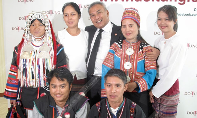 นอกจากนี้ ภายในงานยังได้เชิญชาวบ้านดอยตุงตัวจริงมาร่วมงาน พร้อมเปิดใจถึงความรู้สึกที่แบรนด์ดอยตุงก้าวมาถึงวันนี้ อย่าง คำนวณ นามใส่ ชาวไทยใหญ่ เจ้าหน้าที่ประสานงานการผลิตโรงงานกาแฟ บอกว่า ทำงานกับดอยตุงมา 8 ปีแล้ว เดิมจากชีวิตไม่มีอะไร เป็นเด็กชาวเขาครอบครัวยากจน ได้รับโอกาสนี้ทำให้สามารถสร้างบ้าน มีรถมอเตอร์ไซค์ และภาคภูมิใจที่ผลงานของพวกเราจะก้าวไปสู่เวทีโลก ให้คนทั่วโลกรู้จักดอยตุงมากขึ้น ขณะที่ นันทิดา อภิพรวิฑูร ชาวเขาเผ่าลาหู่ ซึ่งทำงานที่โรงงานแมคคาเดเมียของดอยตุง บอกว่า ชีวิตเปลี่ยนแปลงเยอะมาก ตอนนั้นเราไม่มีความสามารถ วิถีชีวิตพ่อแม่ปลูกฝิ่น ทำไร่เลื่อนลอย ปลูกข้าวโพด พื้นที่ดอยตุงเป็นเขาหัวโล้น ปัจจุบันดอยตุงกลายเป็นป่าที่สมบูรณ์ ตนทำงานที่ดอยตุงมา 7 ปี ดีใจมากที่ตัวเองมีส่วนร่วมในงานของดอยตุง และไม่คิดว่าจะมีวันนี้ สุดท้าย สุทธิพงษ์ เดโชไพศาล ชาวอาข่า หัวหน้าไร่แมคคาเดเมีย บอกว่า ตนอยากเป็นตัวแทนคนดอยตุงขอบคุณทุกคนที่ร่วมสนับสนุนสินค้าของเรา ซึ่งพวกเราทำมาด้วยใจ ทำจากใจและตั้งใจทำมาก