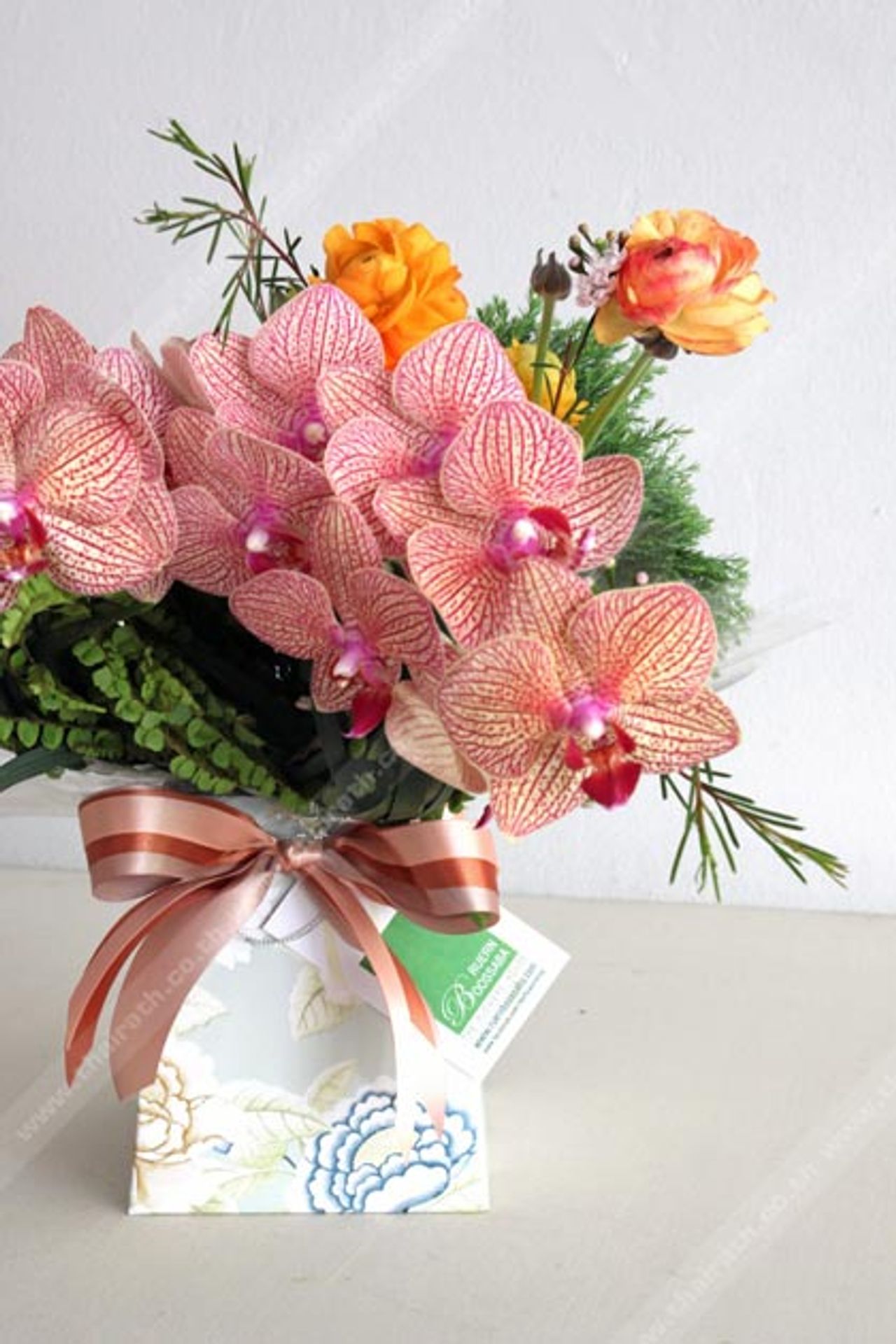 สะดวก รวดเร็ว และสดชื่นสวยงามน่าประทับใจ คือคอนเซปต์ของร้านดอกไม้ “เรือนบุษบา” สาขาสอง ซึ่งเพิ่งเปิดให้บริการภายใต้ไอเดียแปลกใหม่ไม่ซ้ำใคร “FLOWER–TO–GO” บริเวณชั้น 1 อาคารชิดลม ทาวเวอร์ ห้างฯเซ็นทรัล ชิดลม ฝั่งเซ็นทรัลฟู้ดฮอลล์ โดย 4 พาร์ตเนอร์คนดัง ฟอร์ด-กุลวิทย์ เลาสุขศรี, น้อง-สาวิตรี บริพัตร ณ อยุธยา, เอก-ไชยยง รัตนอังกูร และบิ๊ก-ปณิธาน ทองสถิตย์ ตั้งใจนำเสนอให้เป็นทางเลือกใหม่สำหรับคนเมืองที่ใช้ชีวิตอย่างเร่งรีบ แต่ไม่ละเลยในเรื่องของคุณภาพและความพิถีพิถันแฟนๆของร้านดอกไม้เรือนบุษบา The Flower House สาขาอโศกคอร์ท แยกอโศก คงจะคุ้นเคยดีกับฝีมือการจัดดอกไม้สไตล์เรียบโก้ และโมเดิร์น ที่เปี่ยมด้วยเอกลักษณ์โดดเด่นของ “บิ๊ก–ปณิธาน ทองสถิตย์” สำหรับสาขาสอง แม้จะเน้นคอนเซปต์ความสะดวก รวดเร็ว และสดใหม่ของดอกไม้ ที่สั่งตรงมาให้ได้เลือกสรรแบบวันต่อวัน แต่ก็ไม่ทิ้งความละเมียดละไมตามแบบฉบับของฟลาวเวอร์ดีไซเนอร์มือฉมัง โดยซิกเนเจอร์ของ “เรือนบุษบา : FLOWER-TO-GO” จะอยู่ที่แพ็กเกจจิ้งที่ดีไซน์ขึ้นใหม่เฉพาะในสไตล์แฟชั่นบ็อกซ์ เนรมิตกระดาษให้เป็นเสมือนแจกันดอกไม้สุดกูตูร์ มีให้เลือกหลากหลายลวดลาย รวมถึง 2 ลายเด่นที่ได้รับความนิยม คือ Ming และ Shanghai สามารถนำมาดัดแปลงประกอบกับของขวัญวางลงในถาดไม้ หรือตะกร้าสานก็สวยงามน่ารื่นรมย์