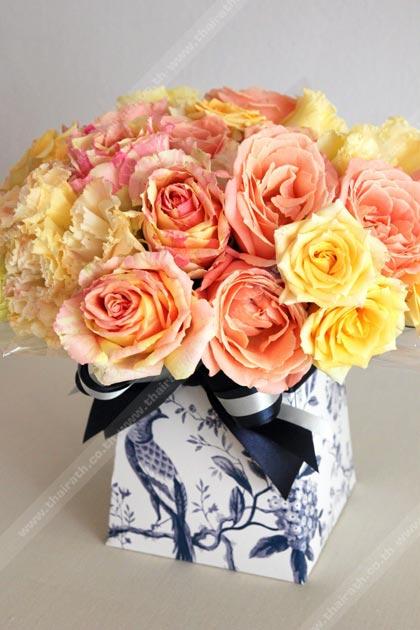 สะดวก รวดเร็ว และสดชื่นสวยงามน่าประทับใจ คือคอนเซปต์ของร้านดอกไม้ “เรือนบุษบา” สาขาสอง ซึ่งเพิ่งเปิดให้บริการภายใต้ไอเดียแปลกใหม่ไม่ซ้ำใคร “FLOWER–TO–GO” บริเวณชั้น 1 อาคารชิดลม ทาวเวอร์ ห้างฯเซ็นทรัล ชิดลม ฝั่งเซ็นทรัลฟู้ดฮอลล์ โดย 4 พาร์ตเนอร์คนดัง ฟอร์ด-กุลวิทย์ เลาสุขศรี, น้อง-สาวิตรี บริพัตร ณ อยุธยา, เอก-ไชยยง รัตนอังกูร และบิ๊ก-ปณิธาน ทองสถิตย์ ตั้งใจนำเสนอให้เป็นทางเลือกใหม่สำหรับคนเมืองที่ใช้ชีวิตอย่างเร่งรีบ แต่ไม่ละเลยในเรื่องของคุณภาพและความพิถีพิถันแฟนๆของร้านดอกไม้เรือนบุษบา The Flower House สาขาอโศกคอร์ท แยกอโศก คงจะคุ้นเคยดีกับฝีมือการจัดดอกไม้สไตล์เรียบโก้ และโมเดิร์น ที่เปี่ยมด้วยเอกลักษณ์โดดเด่นของ “บิ๊ก–ปณิธาน ทองสถิตย์” สำหรับสาขาสอง แม้จะเน้นคอนเซปต์ความสะดวก รวดเร็ว และสดใหม่ของดอกไม้ ที่สั่งตรงมาให้ได้เลือกสรรแบบวันต่อวัน แต่ก็ไม่ทิ้งความละเมียดละไมตามแบบฉบับของฟลาวเวอร์ดีไซเนอร์มือฉมัง โดยซิกเนเจอร์ของ “เรือนบุษบา : FLOWER-TO-GO” จะอยู่ที่แพ็กเกจจิ้งที่ดีไซน์ขึ้นใหม่เฉพาะในสไตล์แฟชั่นบ็อกซ์ เนรมิตกระดาษให้เป็นเสมือนแจกันดอกไม้สุดกูตูร์ มีให้เลือกหลากหลายลวดลาย รวมถึง 2 ลายเด่นที่ได้รับความนิยม คือ Ming และ Shanghai สามารถนำมาดัดแปลงประกอบกับของขวัญวางลงในถาดไม้ หรือตะกร้าสานก็สวยงามน่ารื่นรมย์