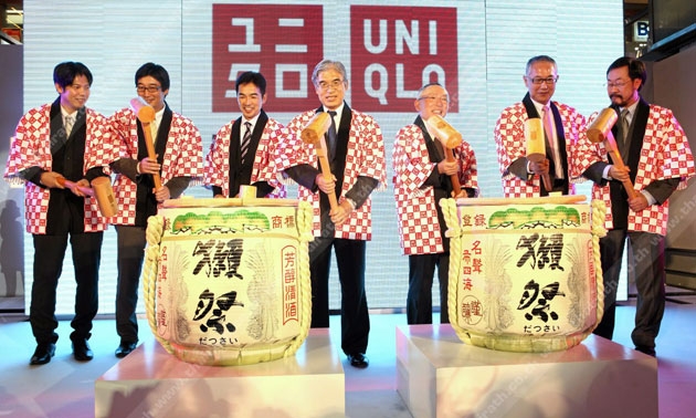 มร.ทาดาชิ ยาไน ประธานใหญ่ยูนิโคล่ นำทีมผู้บริหาร อาทิ มร.ทาคาฮิโร, มร.มิโนรุ ฟุรุซาวะ, มร.นาโอกิ โอโตมะ, ฯพณฯ นายเซอิจิ โคจิมะ เอกอัครราชทูตญี่ปุ่น ประจำประเทศไทย และสุทธิธรรม จิราธิวัฒน์ ทุบถังสาเกเปิดร้าน "ยูนิโคล่".