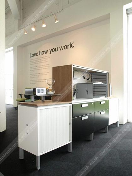 กิ๊บ-รักษวรรณ ยรรยงเกษมสุข หนึ่งในคนวัยทำงานรุ่นใหม่ ซึ่งมีตำแหน่งเป็นผู้ช่วยกรรมการผู้จัดการใหญ่ บริษัท ไทยเมทอล อิมปอร์ต จำกัด บริษัทจำหน่ายเหล็กรูปพรรณ ที่ต้องมีการติดต่อสื่อสารกับลูกค้าและซัพพลายเออร์ตลอดเวลา บอกถึงแนวคิดในการมองหาโต๊ะทำงานที่ถูกใจว่า ต้องเน้นที่ความคล่องตัวเป็นหลัก ตกแต่งแบบเรียบง่าย และมีฟังก์ชั่นในการใช้งานหลากหลาย ตอบสนองลักษณะการทำงานที่เปลี่ยนไปในแต่ละวันของเธอ และเพิ่มพื้นที่ในการเก็บของที่เป็นสัดส่วน