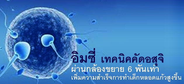 อย่างไรก็ตาม การทำเด็กหลอดแก้วด้วยวิธีอิ๊กซี่ การคัดเลือกอสุจิเข้าไปผสมกับไข่ ก็มีผลต่ออัตราความสำเร็จของการตั้งครรภ์เช่นกัน หากอสุจิที่ไปผสมกับไข่ไม่สมบูรณ์ อาจทำให้ไม่สามารถปฏิสนธิกับไข่ได้ หรือปฏิสนธิแต่ได้ตัวอ่อนที่ไม่สมบูรณ์แข็งแรงพอที่จะฝังตัวในโพรงมดลูกได้ การคัดเลือกอสุจิโดยทั่วไปใช้กล้องจุลทรรศน์สำหรับอิ๊กซี่ ซึ่งไม่สามารถมองเห็นโครงสร้างที่ผิดปกติบริเวณส่วนหัวของอสุจิได้ชัดเจน ปัจจุบันจึงได้มีการพัฒนากล้องกำลังขยายสูงมากกว่า 6000 เท่า นำมาใช้ในการคัดเลือกตัวอสุจิ ทำให้มองเห็นโครงสร้างบริเวณส่วนหัวของอสุจิได้ละเอียดขึ้น โดยเรียกวิธีการคัดเลือกอสุจิด้วยกล้องกำลังขยายสูงนี้ว่า อิมซี่ (IMSI) ซึ่งทำให้สามารถคัดเลือกอสุจิได้ดียิ่งขึ้น ส่งผลต่ออัตราการฝังตัวของตัวอ่อน และอัตราการตั้งครรภ์ที่สูงขึ้น โดยเฉพาะในกลุ่มที่สาเหตุของการมีบุตรยากเกิดจากฝ่ายชาย