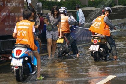 ในช่วงเวลาปกติ เรามักใช้บริการมอเตอร์ไซค์วินเดินทางในซอยที่แคบและลึก แต่เมื่อน้ำมันเอ่อจนท่วมและลึกจนบางคนไม่เสี่ยงที่จะเดินลุยเข้าไป มอเตอร์ไซค์วินจึงพร้อมให้บริการพร้อมราคาค่าโดยสารที่พุ่งขึ้นเป็นเท่าตัว ชายคนหนึ่งที่ใช้บริการมอเตอร์ไซค์วินเป็นประจำได้เล่าว่า บ้านของเขาอยู่ลึกเข้าไปในซอยลาดพร้าว 20 ประมาณ 1 กิโลเมตร เคยจ่ายค่าโดยสารแค่ 15 บาทต่อเที่ยวเท่านั้น แต่ในช่วงวิกฤตการณ์น้ำท่วมเช่นนี้ ค่ามอเตอร์ไซค์รับจ้างก็ขึ้นเป็น 60-100 บาท ซึ่งข้ออ้างของการขึ้นราคาก็คือ"รถมันเสี่ยงที่น้ำจะเข้าเครื่องยนต์ และบริเวณที่จะเข้าไป น้ำมันลึกมาก"