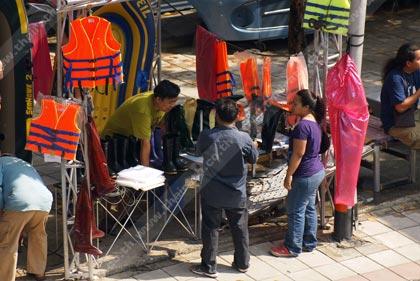 สินค้าที่มาแรง ขายดีที่สุดในท้องตลาดคงหนีไม่พ้นชูชีพ รองเท้าบูท และกางเกงกันน้ำ แน่นอนว่าอุปสงค์มาพร้อมอุปทาน สินค้าเป็นที่ต้องการ ราคาย่อมแพงตามไปด้วย ในยามปกติเราอาจซื้อชูชีพได้เพียงตัวละร้อยกว่าบาท แต่ในช่วงนี้มีราคาตั้งแต่ 250 - 400 บาท ส่วนรองเท้าบูทแบบธรรมด๊าธรรมดาเคยวางขายเกลื่อนกลาดในราคาคู่ละ 100-200 บาท แต่ในขณะนี้ผู้ค้าส่วนใหญ่แปะป้ายราคาสูงถึง 400-500 บาทเลยทีเดียว ซึ่งถ้าเลือกรองเท้าพื้นหนาหรือขนาดรองเท้าสูงเหนือเข่า ราคาก็เพิ่มขึ้นตามไปด้วย ส่วนคุณภาพของสินค้าคงไม่ต้องพูดถึง ขนาดกางเกงกันน้ำที่หวังจะช่วยไม่ให้น้ำที่สกปรกมาโดนผิวกาย พอสวมลงน้ำ น้ำกลับไหลซึมและยิ่งทำให้เดินยากหนักเข้าไปอีก ซึ่งราคาคงไม่ต้องพูดถึง แพงลิ่วไปถึง 300-450 กันแล้ว และคาดว่าราคาคงจะพุ่งขึ้นไปอีก หากสถานการณ์น้ำท่วมยังไม่คลี่คลาย
