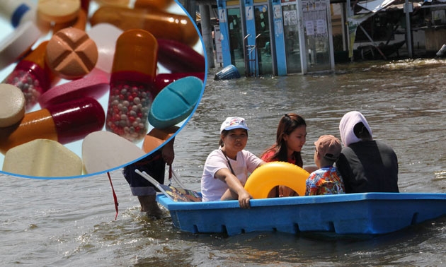 จากสถานการณ์น้ำท่วมครั้งรุนแรงในประเทศไทย นอกจากจะสร้างความเสียหายมหาศาลแก่ทรัพย์สินแล้ว ในด้านสุขภาพก็ได้รับผลกระทบไม่น้อยไปกว่ากัน โดยโรคที่พบบ่อยในช่วงน้ำท่วมและหลังน้ำลด เช่น ไข้หวัด ตาแดง น้ำกัดเท้า โรคท้องร่วง โรคไข้เลือดออก และโรคฉี่หนู เป็นต้น ดังนั้นจึงมีข้อแนะนำการใช้ยาที่จำเป็นอย่างถูกวิธีดังนี้