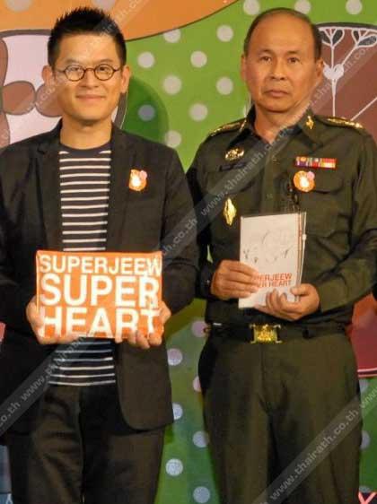 หนึ่งในกิจกรรม “Superjeew Super Heart” ครั้งนี้ คือการรวมเอาคนดัง 3 คน ประกอบด้วย ม.ล.จิราธร จิรประวัติ, แพนเค้ก-เขมนิจ จามิกรณ์ และ เป้-อารักษ์ อมรศุภศิริ มาออกแบบสมุดบันทึก Superjeew Super Heart 3 แบบ 3 สไตล์ พร้อมกระเป๋าซิปลายน่ารัก จำนวน 2,000 ชุด เพื่อออกจำหน่ายใน