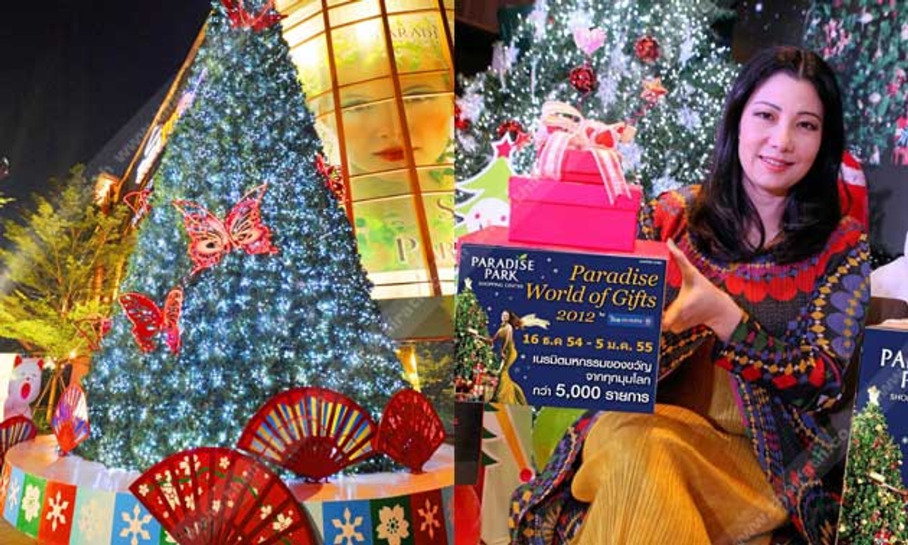 เตรียมเรียกรอยยิ้มกลับคืนสู่คนไทยในช่วงเทศกาลแห่งความสุขส่งท้ายปีเก่าต้อนรับปีใหม่ ศูนย์การค้าพาราไดซ์ พาร์ค จับมือ บริษัท ไทยประกันชีวิต จำกัด จัดงาน “พาราไดซ์ เวิลด์ ออฟ กิฟท์ 2012 โดยไทยประกันชีวิต” ในระหว่างวันที่ 16 ธ.ค.54-5 ม.ค. 55 งานนี้ ชฎาทิพ จูตระกูล ผู้บริหารพาราไดซ์ พาร์ค การันตีความยิ่งใหญ่ของงานนี้ ซึ่งจัดเต็มทุกโซนทุกชั้น โดยดีไซน์บรรยากาศการตกแต่งภายในและภายนอกในสไตล์โมเดิร์น เจแปน โดยนำสัญลักษณ์แห่งวัฒนธรรมของชาวอาทิตย์อุทัยมาประดับตกแต่ง เช่น เสาโทอิญี่ปุ่น, นินจา, ซูโม่, ภูเขา ไฟฟูจิ และตุ๊กตาแมวกวัก “มาเนะกิเนะโกะ” เพื่อให้ความรู้สึกเหมือนเดินเที่ยวและช็อปปิ้งอยู่ในประเทศญี่ปุ่น มอบเป็นของขวัญปีใหม่ พร้อมสร้างความสุขและรอยยิ้มแห่งการเฉลิมฉลองอย่างเต็มที่