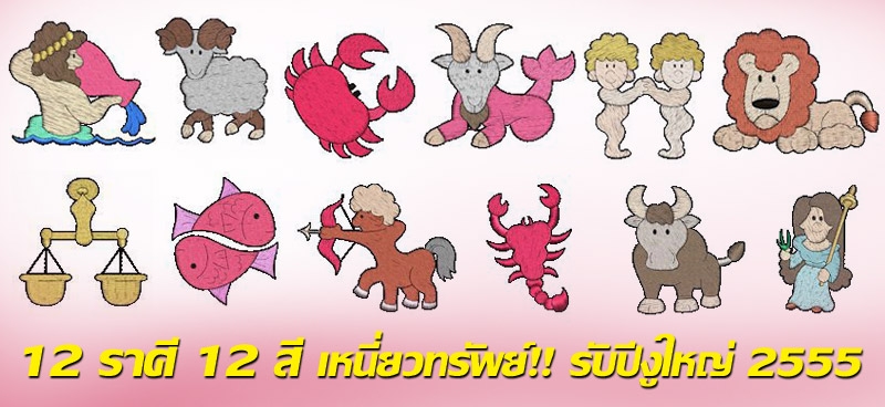 ขึ้นศักราชใหม่รับปีมะโรง 2555 กันแล้วนะคะ โหรหลายสำนักทำนายว่า จะเหนื่อยจะหนักกว่าปีที่แล้ว โดยให้เตรียมรับมือกับภัยพิบัติธรรมชาติ ไว้ล่วงหน้า ที่น่าวิตกอย่างยิ่งก็คือ รูปแบบของภัยพิบัติจะเปลี่ยนโฉมหน้าไปจากเดิมแน่นอน...ตั้งสติไว้ให้มั่น!! ปีนี้ราศีไหนต้องเจออะไร จะโชคดีหรือโชคร้าย “อ.ทศพร ศรีตุลา” หรือ ซินแสช้าง โหรหนุ่มชื่อดังของเมืองไทย มีคำตอบรออยู่แล้ว พร้อมแนะนำ 12 สีเหนี่ยวทรัพย์ สำหรับ 12 ราศี เลือกให้เป๊ะเลือกให้ถูกโฉลกราศี ช่วยหนุนดวงดีดูดเงินเข้ากระเป๋าตลอดปีงูใหญ่