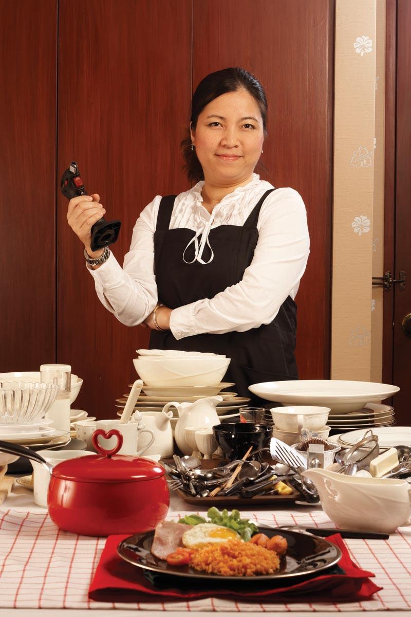 “ถามว่าอุปกรณ์ต่างๆ ที่ใช้ในเล่ม มีวิธีการเลือกใช้อย่างไร เนื่องจากมันเป็นหนังสือ ความเป็นจริงกับการถ่ายรูปมันต่างกันเลย คือ จานชามที่ใช้ต้องยกเครดิตให้กับช่างภาพและสไตลิสต์เป็นคนเลือก นกมีหน้าที่ก็คือซื้อมาเยอะไว้ก่อน ให้เขาเลือกอีกที หลังจากนั้นเขาจะเลือกคัดสรรในการถ่ายภาพ แต่ในความเป็นจริง นกจะเลือกใช้ทุกอย่างให้มันเบสิกที่สุด เหมือนคนทำอาหารตามสั่ง เขียง มีด กระทะ ตะหลิวอย่างละหนึ่ง เราต้องทำอาหารให้ได้ แบบธรรมชาติมาก”