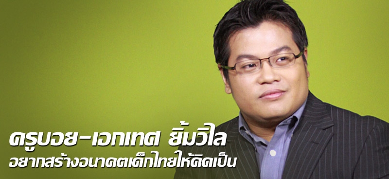 คนเก่งในสังคมไทยอาจหาไม่ยาก แต่เก่งแล้วรู้จักแบ่งปันด้วยนั้น...หายากกว่า! วันนี้จึงขอแนะนำคนรุ่นใหม่ที่มากความสามารถ เคยทำงานกินเงิน เดือนสูงมาก แต่สุดท้ายกลับตัดสินใจมาเป็นครู เพียงแค่ขอเป็นส่วนเล็กๆของสังคม ช่วยสร้างอนาคตของเด็กไทยให้เป็นคนดีและคิดเป็นเขาผู้นั้นชื่อ เอกเทศ หรือ บอย ยิ้มวิไล ทายาทคนที่ 2 ในจำนวนทั้งหมด 3 คน ของ รศ.ดร.ไชยา กับ ทิพย์สุดา ยิ้มวิไล เขาถูกส่งไปเรียนที่ประเทศอังกฤษตั้งแต่อายุเพียง 11 ปี ทำให้มีความเป็นผู้ใหญ่ทั้งเรื่องความคิดอ่านและการช่วยตนเองสูงทีเดียว ตอน ป.ตรี บอย เลือกเรียนวิศวการไฟฟ้าอิเล็กทรอนิกส์ ที่ University of Surrey และต่อ ป.โท ด้านวิศวการจัดการ ที่ Brunel University จากนั้นกลับมาช่วยงานคุณพ่อซึ่งทำสื่อโฆษณาให้กับรถไฟฟ้าใต้ดินอยู่พักใหญ่ ก่อนจะไปโลดแล่นในแวดวงบริษัทที่ปรึกษา ทั้ง Warwick Consulting, Minerva Consulting และ Accenture Solutions Company จนเป็นที่รู้จักของผู้ใหญ่ในบริษัทใหญ่ๆ อย่าง ปตท. การบินไทย และปูนซิเมนต์ไทย