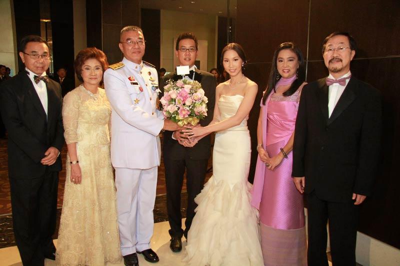 โดยงานแต่งยักษ์ใหญ่นี้ได้รับเกียรติจาก 2 อดีตนายกรัฐมนตรีนายอานันท์ ปันยารชุน และนายชวน หลีกภัย ร่วมงาน ณ ห้องบางกอกคอนเวนชั่นเซ็นเตอร์ โรงแรมเซ็นทาราแกรนด์ แอท เซ็นทรัลเวิลด์ ซึ่งมีแขกร่วมงานระดับเอลิสต์ของเมืองไทยทั้งนักการเมือง นักธุรกิจ เซเลบริตี้ นักแสดง พร้อมด้วยครอบครัวฝั่งเจ้าบ่าวและเจ้าสาวร่วมงานคับคั่งกว่า 2,000 คน