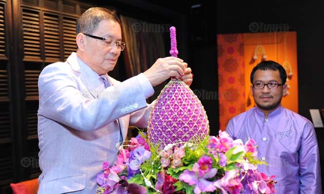 ม.ร.ว.ยงสวาสดิ์ กฤดากร เสียบดอกไม้พานพุ่มเป็นการเปิดงาน.