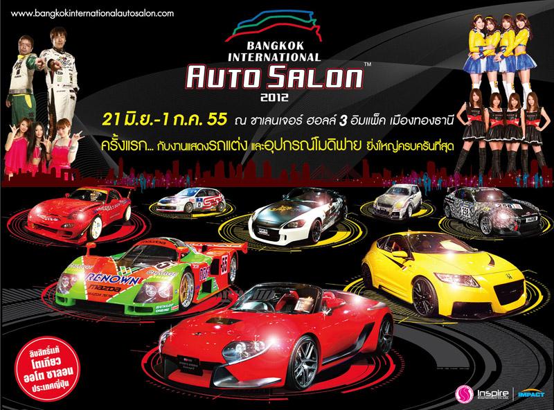 ทั้งนี้ Bangkok International Auto Salon 2012 งานแสดงรถโมดิฟายและอุปกรณ์ตกแต่งอย่างครบครัน ครั้งแรกในไทยด้วยลิขสิทธิ์แท้จากญี่ปุ่น พร้อมอิมพอร์ตรถแต่งกว่า 30 คัน จากโตเกียว ออโต ซาลอน จัดแสดง 21 มิ.ย.- 1 ก.ค.ที่ชาเลนเจอร์ ฮอลล์ 3 เมืองทองธานี การประกวด A-Class Bangkok Auto Salon Image Girl 2012 เปิดรับสมัครตั้งแต่วันนี้-วันที่ 31 พฤษภาคม 2555 สอบถามข้อมูลเพิ่มเติมได้ที่ โทร. 02-508-8185