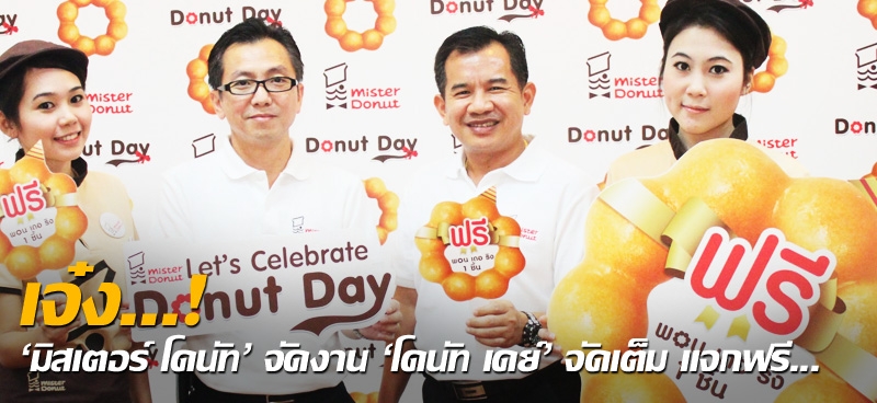 เมื่อ นายสุชีพ ธรรมาชีพเจริญ รองกรรมการผู้จัดการใหญ่ - ปฏิบัติการ บริษัท เซ็นทรัล เรสตอรองส์ กรุ๊ป จำกัด และนายกันตภณ ศรีสุวรรณ ผู้จัดการทั่วไป “มิสเตอร์ โดนัท” ออกมาเชิญทุกคนร่วมเฉลิมฉลอง “โดนัท เดย์” ซึ่งจัดแจกต่อเนื่องมาเป็นปีที่ 3 แจกฟรี พอน เดอริง ทั่วประเทศ ปีนี้ตรงกับวันศุกร์ที่ 1 มิถุนายน ศกนี้ เวลา 16.00 น. เป็นต้นไป
