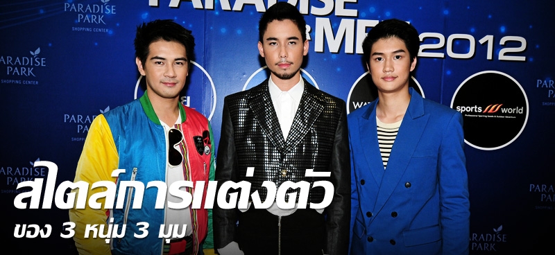 นอกจากนี้ยังมี 3 เซเลบริตี้หนุ่มที่มาร่วมเดินแฟชั่นโชว์ในชุด Energetic Men’s Style by Paradise ต่างเผยถึงสไตล์การแต่งตัวของตนด้วย อย่าง นนท์ อัมระนันท์ หนุ่มก๊อบปี้ไรเตอร์แห่งดีแทค บอกว่า สไตล์ผมเรียบเท่ และผมเป็นคนชอบกีฬา โดยเฉพาะกอล์ฟ ผมมอง ว่า แฟชั่นกับกีฬามีความเกี่ยวข้องกัน สามารถนำมาผสานกันได้ จะทำให้เราดูดีอีกด้วย ส่วน นรุตม์ ก้องธรนินทร์ บอกว่า ส่วนตัวมองว่าทั้งเรื่องของแฟชั่น ไอที และกีฬา มีความสัมพันธ์กับชีวิตเราหมด และตัวเขาจะเป็นคนชอบติดตามเทรนด์แฟชั่นอยู่เสมอ โดยอัพเดทผ่านทางโลกออนไลน์ แต่ถึงอย่างไรเขาก็ ไม่ทิ้งสไตล์ของเขาเอง ที่ชอบสบายๆแบบเสื้อยืดกางเกงยีนส์ ซึ่งเสื้อยืดซื้อตามตลาดนัด แต่เสื้อเชิ้ตยังนิยมของแบรนด์เพราะคัตติ้งเนี้ยบกว่า สุดท้ายเป็นหนุ่มนักการทูตปฏิบัติการ ประจำกระทรวงบัวแก้ว กิตติเทพ เทพหัสดิน ณ อยุธยา กล่าวว่า เขาเป็นคนง่ายๆ สไตล์การแต่งตัวเลยง่ายๆไปด้วย แต่ก็มีลวดลายสีสันบ้าง แต่ถึงอย่างไรก็ต้องแต่งกายให้เหมาะสมกับสถานที่ที่ไปด้วย