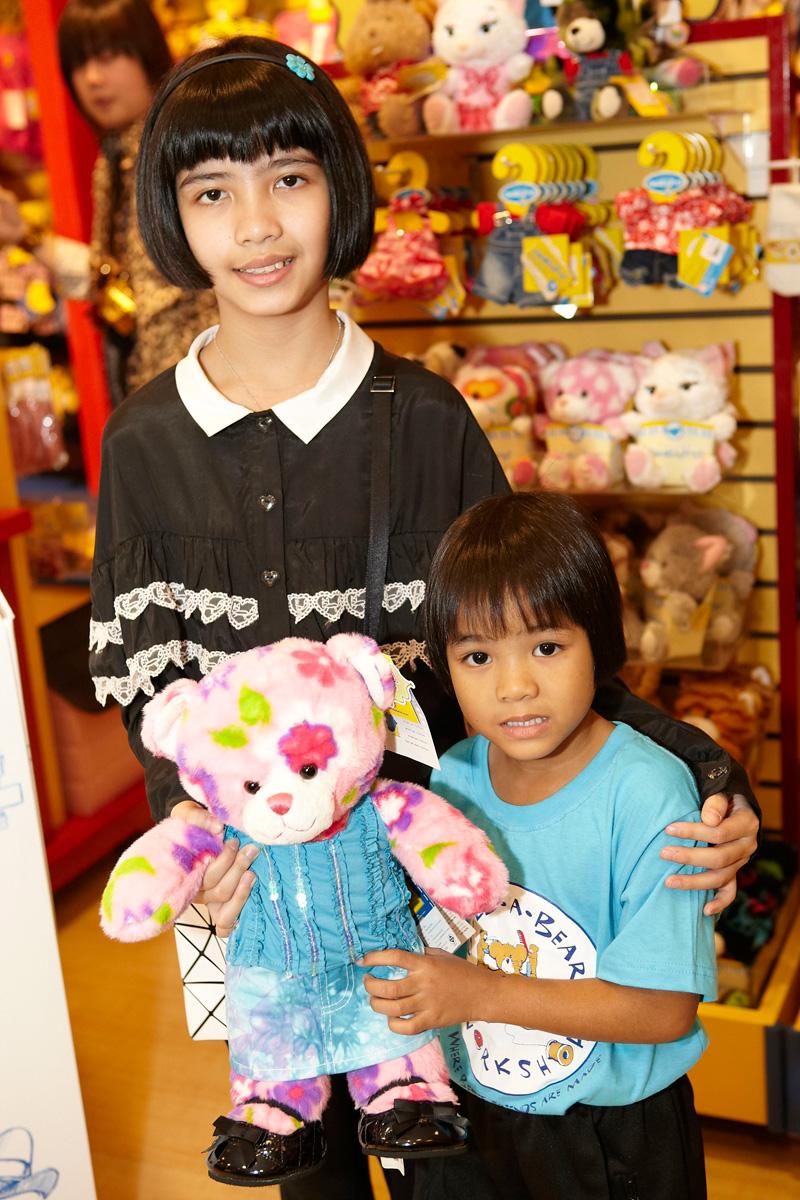 มาถึงคิวของ น้องแอ๊น-ด.ญ.พิมพิสุทธิ์ โกศลกุล เล่าว่า “ชอบตุ๊กตาบิวด์-อะ-แบร์ฯ มากค่ะ เพราะเวลามาที่นี่เราต้องสร้างเขาขึ้นทีละขั้นตอน เหมือนให้ชีวิตเขาขึ้นมาเป็นเพื่อนของเรา เมื่อก่อนมีอยู่ประมาณ 30 ตัว แต่ตอนนี้เหลือ 15 ตัว เพราะเอาไปบริจาคตามมูลนิธิต่างๆ ซึ่งส่วนใหญ่หนูจะเอาตุ๊กตาฝากให้คุณป้าไปบริจาค บางทีก็จะไปที่ศูนย์ฯ หรือมูลนิธิต่างๆ เองด้วย รู้สึกมีความสุขมากเวลาได้ไปร่วมกิจกรรมร้องเพลงและเลี้ยงอาหารน้องๆ วันนี้รู้สึกดีใจที่ได้ให้ตุ๊กตาน้องๆ และมีความสุขมาก เลยค่ะที่เห็นน้องๆ มีความสุข เขามาจับเล่นตลอด ขนาดแต่งตัวตุ๊กตาเป็นผู้หญิง น้องผู้ชายยังชอบเลย อยากให้เขามีโอกาสเล่นตุ๊กตาเหมือนเราค่ะ”