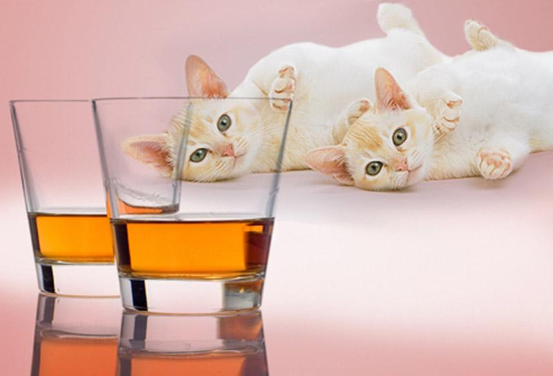 เจ้าของคอทองแดงทั้งหลาย กรุณาหยุดความคิดจะให้น้องแมวเมามายเป็นเพื่อนไปกับคุณจะดีกว่า เพราะเครื่องดื่มที่มีแอลกอฮอลล์ อาทิ เบียร์ สุราและไวน์ ทำลายตับและสมองของเจ้าเหมียว แต่หากบังคับให้พวกมันกินยกซดเพียวๆ แค่ 2 ช้อนโต๊ะ ก็สามารถปลิดชีพพวกมันได้ในเวลาไม่กี่ชั่วโมง