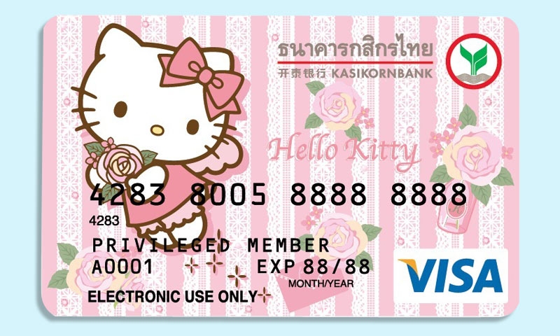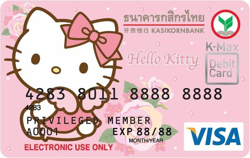 เป็นตัวการ์ตูนที่ยังคงนิยมตลอดกาล สำหรับเจ้าแมวเหมียวแสนคิขุอย่าง คิตตี้ ไม่ว่าจะเป็นคนรุ่นไหน แต่ถ้าดันหลงรักกับเจ้าตัวนี้ไปแล้ว ก็ยากที่จะถอนตัว ซึ่งหลังจากที่ทางธนาคารกสิกรไทย ได้เคยเปิดตัวบัตรเดบิตที่สามารถออกแบบโดยเจ้าของเองได้แล้ว งานนี้เลยรีบคว้าโอกาสเกาะกระแสความฮอตของเจ้าเหมียวคิตตี้มาใส่ลงในบัตร เดบิต ให้บรรดาแฟนคลับได้มีไว้ใช้ และสะสมกัน