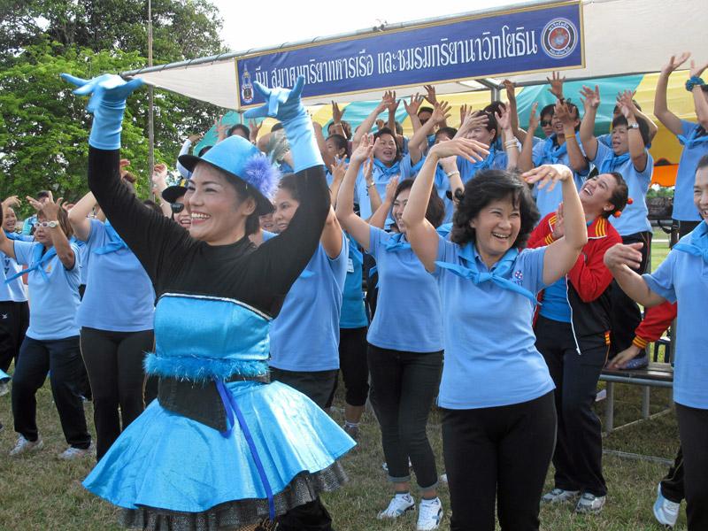 พรจิตร์ หรุ่นเริงรมย์ ภริยา ผบ.ทร.ร่วมเต้นเชียร์ลูกทีมอย่างเต็มที่.