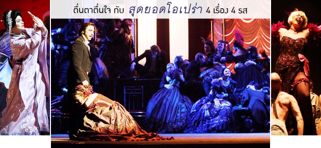 ถึงแม้โอเปร่าทุกชุดจะแสดงเป็นภาษาอิตาเลียนโบราณ แต่ไม่ต้องกลัวนะคะ เพราะมีบทแปลทั้งภาษาไทย และภาษาอังกฤษประกอบ สำรองที่นั่งได้ที่ไทยทิคเก็ตเมเจอร์ โทร. 0-2262-3456.
