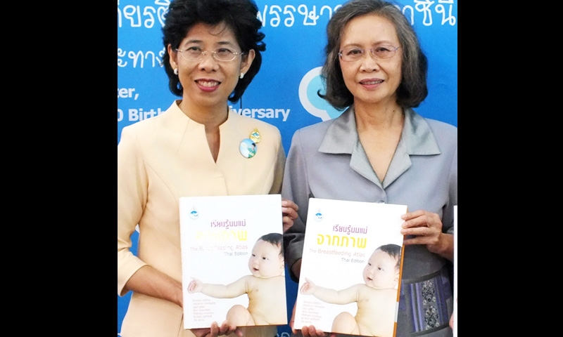 พญ.ศิราภรณ์ สวัสดิวร และพญ.ศิริพร กัญชนะ ผู้จัดทำหนังสือ “เรียนรู้นมแม่จากภาพ”.