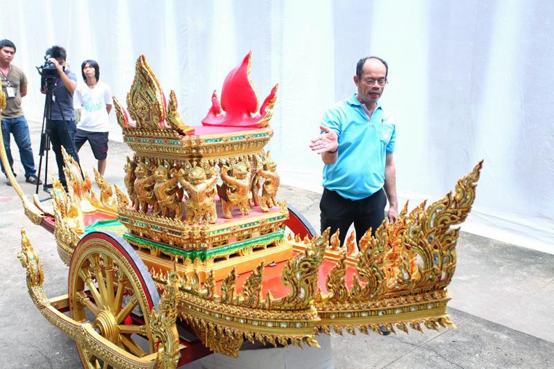 อ.สุดสาคร ชายเสม บรรจงสร้างราชรถเพื่อใช้ในการแสดงโขนรามเกียรติ์ ตอน “จองถนน”.