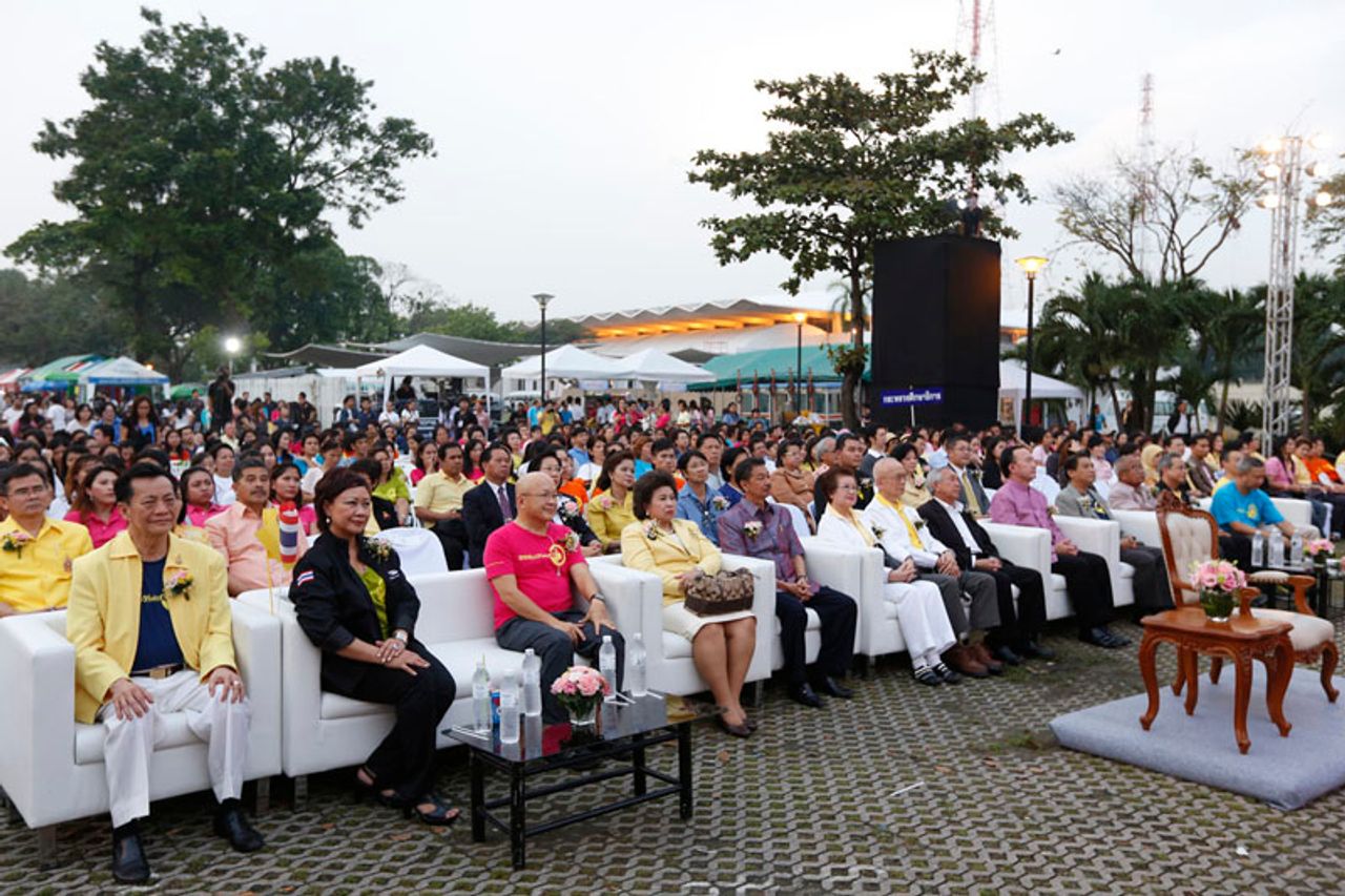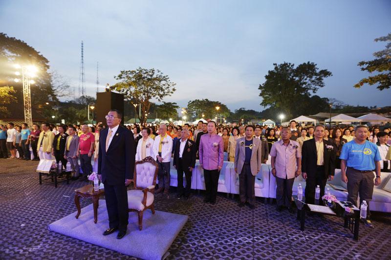 พลตรีหม่อมเจ้าจุลเจิม ยุคล ให้เกียรติมาเป็นประธานในพิธีเปิดงาน พร้อมกล่าวถวายราชสดุดีและนำประชาชนชาวไทยทุกหมู่เหล่ากล่าวถวายสัตย์ปฏิญาณในการประพฤติตนเป็นคนดี มีความซื่อสัตย์สุจริต มุ่งมั่นสร้างคุณประโยชน์แก่ประเทศชาติและประชาชนตามรอยเบื้องพระยุคลบาท รวมถึงดำรงชีวิตโดยยึดหลักธรรมคำสอนของศาสนาและพระบรมราโชวาทตลอดไป จากนั้นผู้มาร่วมงานจึงร่วมกันร้องเพลงสรรเสริญพระบารมีและเพลงสดุดีมหาราชา แล้วร่วมกันเปล่งเสียง “ทรงพระเจริญ” ดังกึกก้องไปทั่วบริเวณ พร้อมโบกธงชาติและธงสีเหลืองประดับตราสัญลักษณ์ ภปร. ไปทั่วทั้งงาน ด้วยความปลาบปลื้มและภาคภูมิใจที่ได้อยู่ใต้ร่มพระบรมโพธิสมภาร