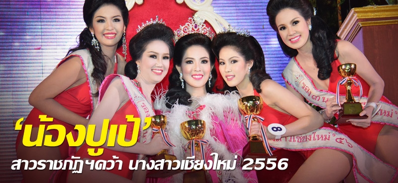 น้องปูเป้ พัทยาภรณ์ เทพวีระพงศ์ สาวสวยจากรั้ว มรภ.เชียงใหม่ สวยโดนใจกรรมการคว้ามงกุฎ "นางสาวเชียงใหม่ 2556" ไปครอง ท่ามกลางอากาศหนาวจนสาวๆ ผู้เข้าประกวดต้องยืนขาสั่นระริกในชุดว่ายน้ำ...