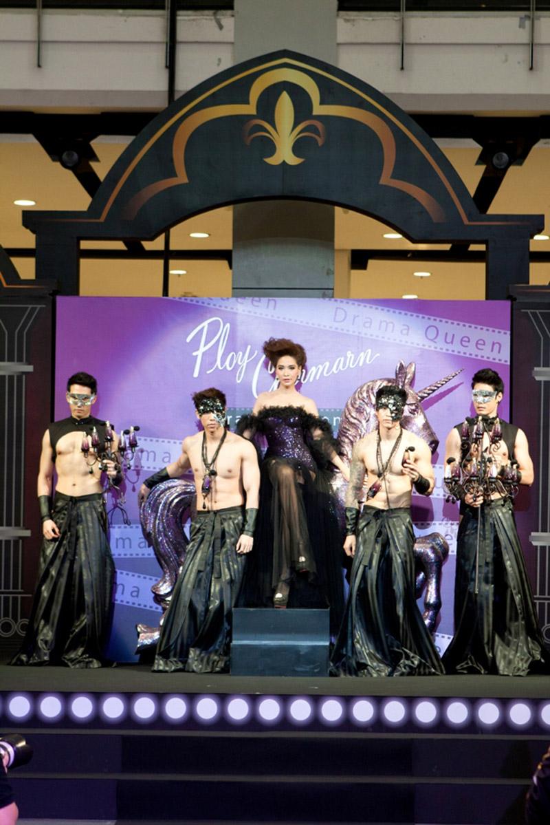 จาก Poster ภาพยนตร์สู่ภาพ Drama Queen / จากภาพบนกล่องบรรจุภัณฑ์และภาพหลักที่ใช้เป็นชื่อโฆษณา Drama Queen ภาพของพลอย เฌอมาลย์ยืนอยู่บนเวทีประดับไฟงดงาม มีควันสีขาวพวยพุ่งออกจากมาจากฉากหลังเหมือนการฉายภาพยนตร์ด้วยเครื่องโปรเจคเตอร์ในโรงภาพยนตร์ซึ่งดูลึกลับน่าค้นหา นักแสดงเจ้าบทบาทยืนโพสถือหน้ากากอยู่หน้ายูนิคอร์นที่พร้อมจะพยศได้ตลอดเวลา เราไม่สามารถคาดเดาได้ว่านี่คือการสวมวิญญาณคาแรกเตอร์ใหม่ หรือเป็นการถอดหน้ากากที่ใช้ในการแสดงเพื่อบอกว่านักแสดงก็คือหญิงสาวธรรมดาคนหนึ่งเช่นกันและน้ำหอมขวดนี้คือความลับที่จะช่วยให้หญิงสาวทุกคนค้นเจอคาแรกเตอร์และบทบาทในแต่ละวัน