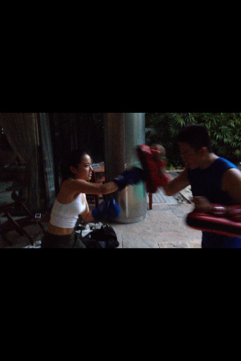 4. เมื่อมีเวลาว่าง กิจกรรมที่โปรดปรานคือออกกำลังกาย โดยช่วงนี้กำลังฮิตการ 'ชกมวย' เป็นกิจกรรมเรียกเหงื่อ
