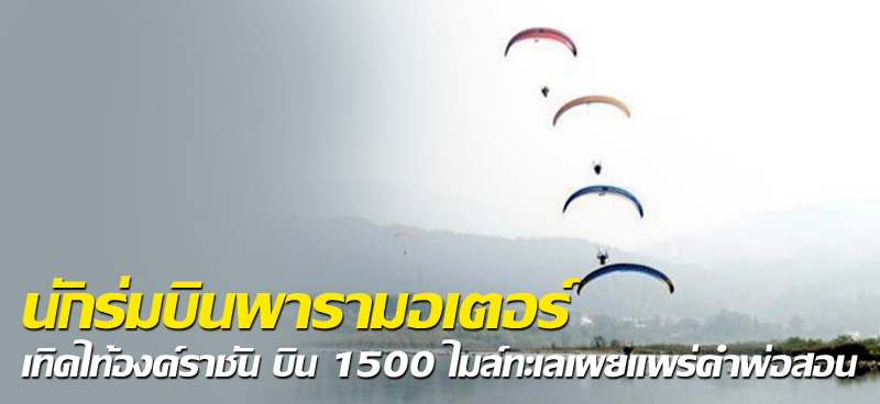 รวมใจสร้างประวัติศาสตร์เพื่อเฉลิมพระเกียรติพระบาทสมเด็จพระเจ้าอยู่หัว นักกีฬาร่มบินพารามอเตอร์ไทย ร่วมกับ สมาคมกีฬาทางอากาศและการบินแห่งประเทศไทย ในพระบรมราชูปถัมภ์ และ จุฬาลงกรณ์มหาวิทยาลัย จัดกิจกรรม “บิน 1500 ไมล์ เทิดไท้องค์ราชัน แบ่งปันคำพ่อสอน” เพื่อเผยแพร่บทเพลงในอัลบั้ม “เพลงเฉลิมพระเกียรติคำพ่อสอน” สู่ประชาชนมากยิ่งขึ้น พร้อมน้อมนำ “คำพ่อสอน” ไปสู่การปฏิบัติ ได้แถลงข่าวที่อาคารเฉลิมพระชนมพรรษา 7 รอบ การกีฬาแห่งประเทศไทย สนามกีฬาหัวหมากเมื่อเร็วๆนี้