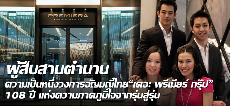 โด่งดังเป็นที่รู้จักในวงการธุรกิจค้าส่งเพชรพลอยและเครื่องประดับอัญมณีระดับโลกมาหลายทศวรรษ สำหรับ “เดอะ พรีเมียร์ กรุ๊ป” ในฐานะเจ้าแห่งการเจียระไนเพชรสวยสมบูรณ์ที่สุดติดอันดับ 1 ใน 5 ของโลก และผู้ส่งออกพลอยอันดับหนึ่งของเอเชีย ล่าสุด ยักษ์ใหญ่วงการเจียระไนอัญมณีของเมืองไทย ได้ก้าวสู่จุดเปลี่ยนสำคัญอีกครั้ง เมื่อ 4 ทายาทรุ่นใหม่เจนเนอเรชั่นที่สี่ ภายใต้การนำของ จิ๊บ-อชิรญา อิงคตานุวัฒน์ วรวงศ์วสุ, ท็อป-พีรยสถ์ ศิริเกียรติสูง, จอย-สรัลยา เลิศสุมิตรกุล และ โจ้-นิธิ เลิศสุมิตรกุล ผนึกกำลังกันต่อยอดธุรกิจสยายปีกสู่พรมแดนใหม่ของการค้าปลีกเครื่องประดับจิวเวลรี่ เพื่อสืบสานตำนานความยิ่งใหญ่แห่งตระกูลอัญมณีให้คงอยู่คู่เมืองไทย และส่งผ่านความภาคภูมิใจสู่ลูกหลานรุ่นแล้วรุ่นเล่ากว่าจะมาถึงวันนี้ กิจการของ “เดอะ พรีเมียร์ กรุ๊ป” เริ่มก่อร่างสร้างตัวจากห้องแถวเล็กๆย่านหัวเม็ด เปิดเป็นร้านขายทอง-เงิน-นาก เมื่อปี 1905 โดย “เถ้าแก่เตียวเม้ง แซ่เบ๊” ต้นตระกูลดุรงคพิทยา ตั้งชื่อว่า ห้างหุ้นส่วนจำกัด มณีรัตน์ (เบ๊จิ้นเต็ก) แรกเริ่มยังไม่ทำเพชรพลอย แค่ค้าขายแบบซื้อมาขายไป กระทั่งพัฒนาเป็นผู้ส่งออกอัญมณีรายใหญ่ที่สุดของเมืองไทย เมื่อเข้าสู่ยุคของ “เจ้าสัววิชิต ดุรงคพิทยา” ลูกชายคนเล็กของ “เถ้าแก่เตียวเม้ง” ซึ่งมีศักดิ์เป็นอากงของ 4 ทายาทรุ่นใหม่เจนเนอเรชั่นที่สี่