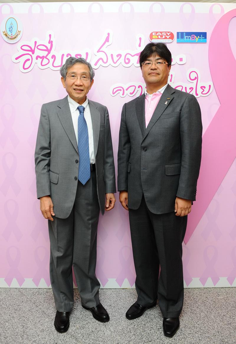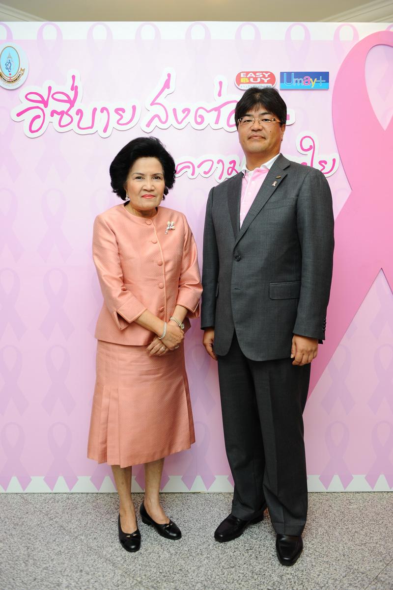 เปิดตัวโครงการ หม่อมราชวงศ์ปรียางค์ศรี วัฒนคุณ ผู้ช่วยเลขาธิการสภากาชาดไทย ฝ่ายการจัดหารายได้ และรองศาสตราจารย์นายแพทย์กฤษณ์ จาฏามระ ผู้ก่อตั้งและหัวหน้าศูนย์สิริกิติ์บรมราชินีนาถโรงพยาบาลจุฬาลงกรณ์ สภากาชาดไทย พร้อมด้วย มร.ทาเคฮารุ อุเอมัทซึ ประธานกรรมการและประธานเจ้าหน้าที่บริหาร บริษัท อีซี่บาย จำกัด (มหาชน) ร่วมเปิดตัวโครงการ อีซี่บาย “ส่งต่อความห่วงใย” โดยมีทูตประชาสัมพันธ์ของศูนย์สิริกิติ์บรมราชินีนาถ แหวนแหวน ปวริศา เพ็ญชาติ และคุณแม่ปัญญชลี เพ็ญชาติ พร้อมด้วย เกรซ มหาดำรงค์กุล และคุณแม่กลอเรีย มหาดำรงค์กุลร่วมเสวนาในหัวข้อ ‘มะเร็งเต้านม...อันตรายที่หญิงไทยคาดไม่ถึง’ เพื่อสร้างความรู้ความเข้าใจและตระหนักถึงพิษภัยของมะเร็งเต้านม ทั้งตนเอง บุคคลใกล้ชิด และสร้างการรับรู้สู่สังคมไทย ณ หอประชุม ชั้น 9 อาคารว่องวานิช โรงพยาบาลจุฬาลงกรณ์ สภากาชาดไทย