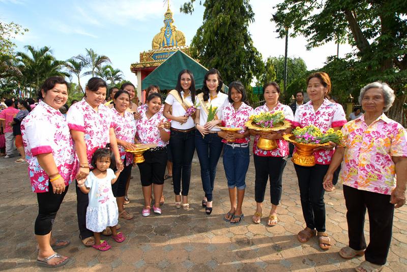 นั้นคณะ นำโดย ณวัฒน์ อิสระไกรศีล ผู้อำนวยการกองประกวด ได้พาคณะผู้เข้าประกวดทั้ง 37 คน เดินทางออกจาก อ.หาดใหญ่ จ.สงขลา ไปยังชุมชนท่องเที่ยวทรายขาว อ.โคกโพธิ์ จ.ปัตตานี เพื่อร่วมงานเสี้ยงต้อนรับ ท่ามกลางการรักษาความปลอดภัยของเจ้าหน้าที่ตำรวจ และทหาร จากนั้นเดินทางไปนมัสการหลวงปู่ทวด วััดช้างให้ หรืือ วัดราษฎร์บูรณะ พร้อมกับเยี่ยมคาราวะและสนทนาธรรม ขอพรจาก ท่านเจ้าคุณสุนทร ปริยัติพิธาน หรือที่ชาวปัตตานีเรียกว่า "พ่อท่านหยวน" เจ้า อาวาสวัดช้างให้ เจ้าอาวาสอำนวยพรให้ทุกคนโชคดี พร้อมกับมอบพระให้กับผู้เข้าประกวดและคณะทุกคน