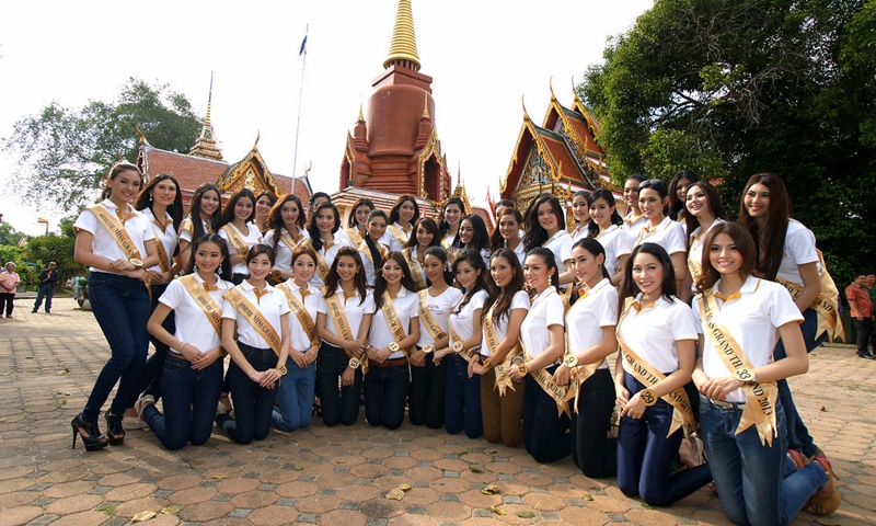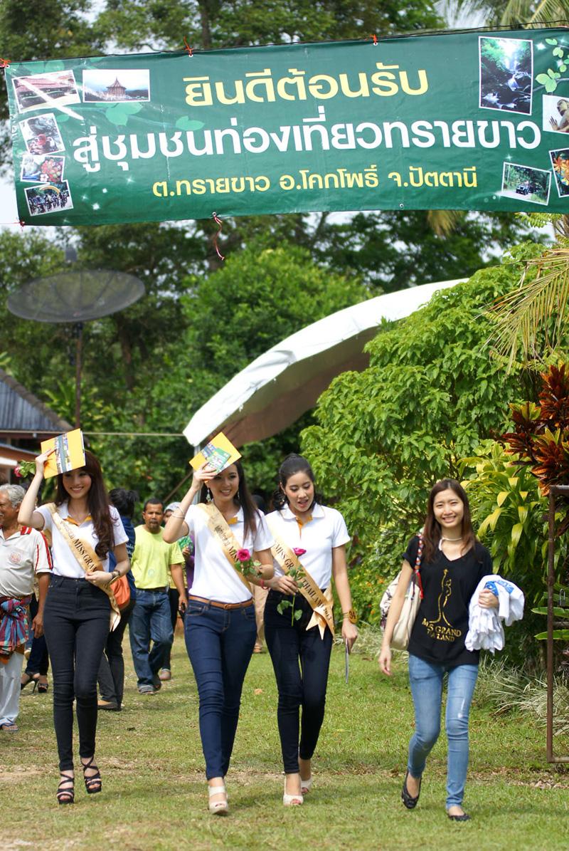 สาวงามผู้เข้าประกวด มิส แกรนด์ ไทยแลนด์ 2013 ทั้ง 37 คน เดินทางไปเก็บตัวที่ จ.ปัตตานี ท่ามกลางเสียงวิพากษ์วิจารณ์ถึงความเสี่ยงอันตราย ไปยังชุมชนท่องเที่ยวทรายขาว อ.โคกโพธิ์ จ.ปัตตานี นมัสการหลวงปู่ทวด ขอพรจากองค์เจ้าแม่ลิ้มกอเหนี่ยว ท่ามกลางการรักษาความปลอดภัยจาก จนท.ทหาร-ตำรวจ...
