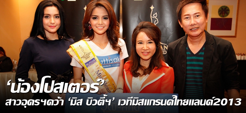 หน้าใสโดนใจกรรมการ ทำให้ผู้เข้าประกวดหมายเลข 33 น.ส.ภัณฑิรา เชิดในเมือง หรือน้องโปสเตอร์ นศ.ปี 2 ม.ขอนแก่น จากอุดรธานี คว้ารางวัล “มิส บิวตี้ เฟอร์เฟกต์ บาย วุฒิศักดิ์” จากเวทีมิสแกรนด์ไทยแลนด์ 2013 ไปครอง...