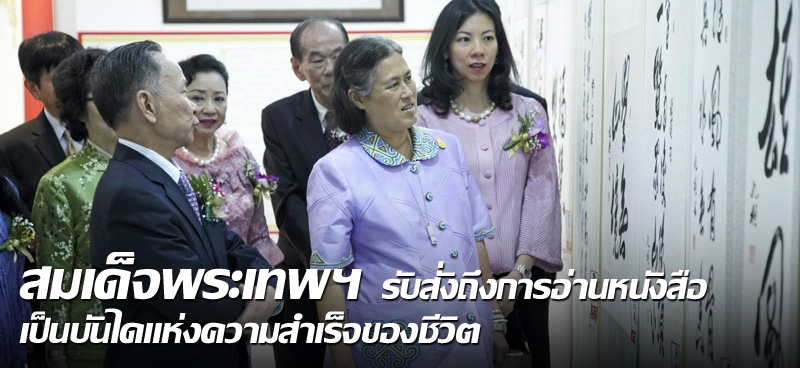 จากนั้น สมเด็จพระเทพรัตนราชสุดาฯ ได้ทอดพระเนตรนิทรรศการในงาน พร้อมทรงอักษรพู่กันจีน เป็นภาษาจีนที่มีความหมายว่า “การสอนเป็นการเพิ่มพูนความรู้ให้แก่กันและกัน ทั้งฝ่ายนักเรียนและครูผู้สอน” และทรงลงพระนามาภิไธย “สิรินธร” เป็นภาษาจีน