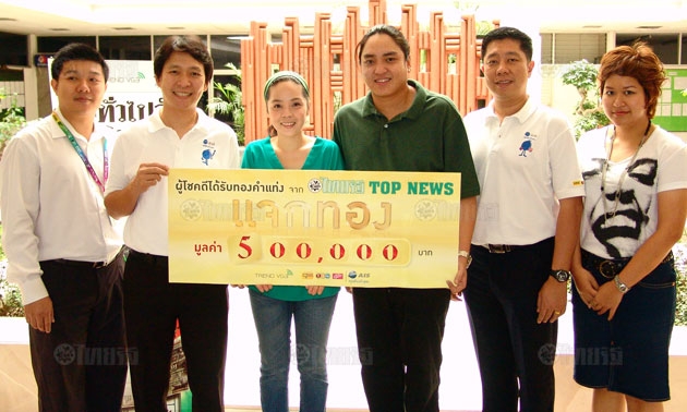 ผู้สื่อข่าวรายงานด้วยว่า สำหรับแคมเปญ "ไทยรัฐท็อปนิวส์แจกทอง" นั้น ได้ทำการแจกรางวัลทองคำแท่งมูลค่า 100,000 บาท ไปแล้ว 2 ครั้ง โดยผู้ที่โชคดีได้แก่ นายจรัญ ไผ่เรือง จังหวัดสุโขทัย รับมอบรางวัลเมื่อวันที่ 10 ก.ค. และน.ส.มัณฑนา สืบชาติ จังหวัดชลบุรี รับมอบรางวัลไปเมื่อวันที่ 10 ส.ค. ที่ผ่านมา ซึ่งแคมเปญดังกล่าวได้สิ้นสุดลงแล้ว