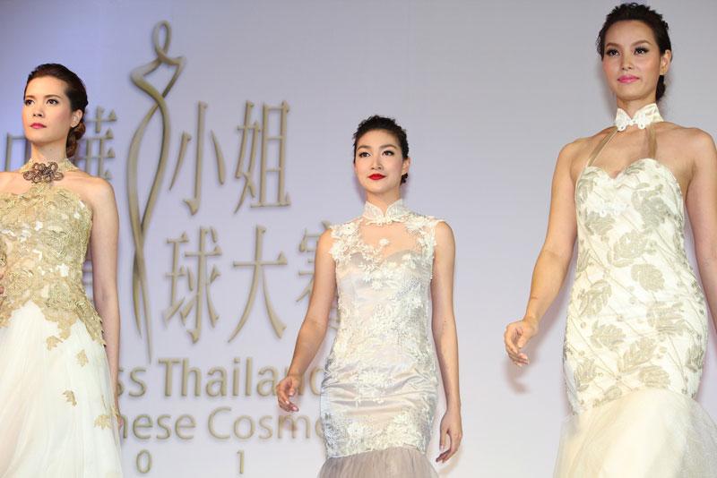 ในงานแถลงข่าวได้มีการเดินแบบชุดที่เหล่าสาวงามจะสวมใส่ในการประกวด โดยนางแบบและนักแสดงสาวสวยชื่อดัง อาทิ แพนเค้ก-เขมนิจ จามิกรณ์ เมย์-พิชญ์นาฏ สาขากร กรีน-อัษฎาพร สิริวัฒน์ธนกุล ออแกน-ราศี วัชราพลเมฆ และ แอม-สุทธิกานต์ หวังเจริญทวีกุล ที่มาเดินแบบทั้งชุดราตรี ชุดว่ายน้ำ และชุดกี่เพ้าสีแดงสด ทั้งนี้การประกวด Miss Thailand Chinese Cosmos 2013 จะถ่ายทอดสดรอบชิงชนะเลิศในวันที่ 18 ก.ค.2556 ทางสถานีโทรทัศน์สีกองทัพบกช่อง 7 และติดตามความเคลื่อนไหวของการเก็บตัวสาวงามผ่านทาง GTH ONAIR Channel และเว็บไซต์ของ TCCTV