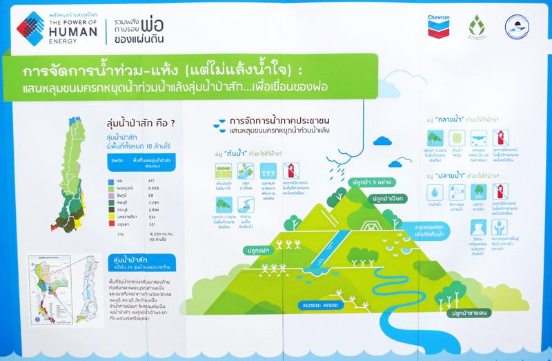 จากพระราชดำรัสของ พระบาทสมเด็จพระเจ้าอยู่หัว ที่ทรงแสดงความห่วงใยต่อปัญหาภัยแล้งและปัญหาอุทกภัยเมื่อเดือนเมษายนที่ผ่านมาว่า “...แม่น้ำป่าสักจะบริหารจัดการได้ยากที่สุด เพราะปริมาณน้ำไหลลงอ่างสูงมาก หลายเท่าของความจุอ่าง ....ถ้าออกจากโรงพยาบาลเมื่อไหร่ จะช่วยได้มากกว่านี้...” บริษัทเชฟรอนประเทศไทยสำรวจและผลิต จำกัด จึงขานรับพระราชดำรัสดังกล่าว ด้วยการผนึกกำลังสถาบันเศรษฐกิจพอเพียง และมูลนิธิกสิกรรมธรรมชาติ รวมทั้งพันธมิตรหลายภาคส่วน จัดทำโครงการ The Power of Human Energy : A Journey Inspired by the King หรือ “พลังคนสร้างสรรค์โลก รวมพลังตามรอยพ่อของแผ่นดิน” ด้วยการเชิญชวนคนไทยทั่วประเทศแสดงพลังน้อมนำคำสอนของในหลวงด้านการอนุรักษ์น้ำมาปฏิบัติ ด้วยการเดิน วิ่ง ปั่นจักรยาน หรือขับรถ เพื่อเรียนรู้ศาสตร์ พระราชาผ่านชุมชนต้นแบบ ตั้งแต่ปลายน้ำขึ้นไปจนถึงต้นน้ำ ระหว่างวันที่ 27 ก.ค.ถึง 4 ส.ค.ศกนี้