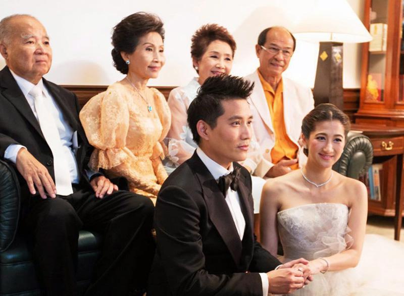 คู่วิวาห์ โป้ง-ชัยยุต กับแท๊ต-ธิศนา กับครอบครัว ฝ่ายชาย เกริกชัย-รศ.รัชนี-ภัทริน ซอโสตถิกุล.