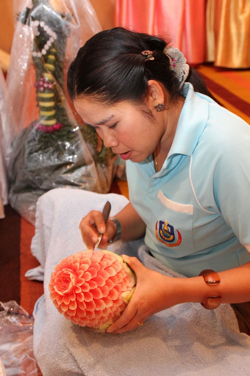 นางอารยา อรุณานนท์ชัย ประธานจัดการประกวดฯเผยว่า เป็นความตั้งใจที่จะร่วมเทิดพระเกียรติสมเด็จพระนางเจ้าฯ พระบรมราชินีนาถ ในโอกาสทรงเจริญพระชนมพรรษา 81 พรรษา เพื่ออนุรักษ์ศิลปวัฒน ธรรมไทย โดยเฉพาะงานแกะสลักของไทย ที่สามารถสะท้อนถึงวิถีชีวิต ความเป็นอยู่ ความละเอียดลออ รวมถึงความโดดเด่นในงานฝีมือของชนชาติไทยให้เป็นที่ประจักษ์ จึงได้จัดงานประกวดติดต่อกันเป็นปีที่ 15 แต่ละปีจะพบเทคนิคมากมาย จากกลุ่มโรงแรม, บุคคลทั่วไป รวมถึงกลุ่มนักศึกษา ซึ่งทุกท่านมีความรักในสิ่งเดียวกัน หลงใหลในวิชาแกะสลักของไทย จึงได้แลกเปลี่ยนวิชาความรู้ บ้างก็เก็บเป็นไอเดียใหม่ๆไปใช้ในงานเพิ่มขึ้น ช่วงหลังจึงกลายเป็นงานใหญ่ที่นักแกะสลักทั่วประเทศให้ความสนใจ รอดูวิชาและผลงานใหม่ๆ เกิดการสื่อสาร ถ่ายทอด และพัฒนาผลงานอย่างคาดไม่ถึง ทั้งการจับ พับจีบ คว้านลึก ตวัด กระพุ้ง ฯลฯ ทำให้ตัดสินยากขึ้นทุกปี แต่ทั้งนี้ก็นำมาซึ่งความภาคภูมิใจที่ลูกหลานไม่ลืมวิชา!! โดยแนวคิดของงานประกวดปีนี้ เนื่องมาจากสมเด็จพระนางเจ้าฯ พระบรมราชินีนาถ ทรงห่วงใยความเป็นอยู่ของเกษตรกรราษฎรผู้ยากจน จึงมีพระราชดำริส่งเสริมงานศิลปหัตถกรรมพื้นบ้านให้เป็นอาชีพเสริมสร้างรายได้เพิ่ม และมีพระราชประสงค์ให้ผลิตภัณฑ์งานฝีมือมีชื่อเสียงไปถึงนานาชาติ จึงคิดว่างานแกะสลักผักผลไม้จะเป็นช่องทางหนึ่งในการเผยแพร่ รณรงค์ให้คนไทยและต่างชาติสนับสนุนผลิตภัณฑ์ศิลปาชีพไทย