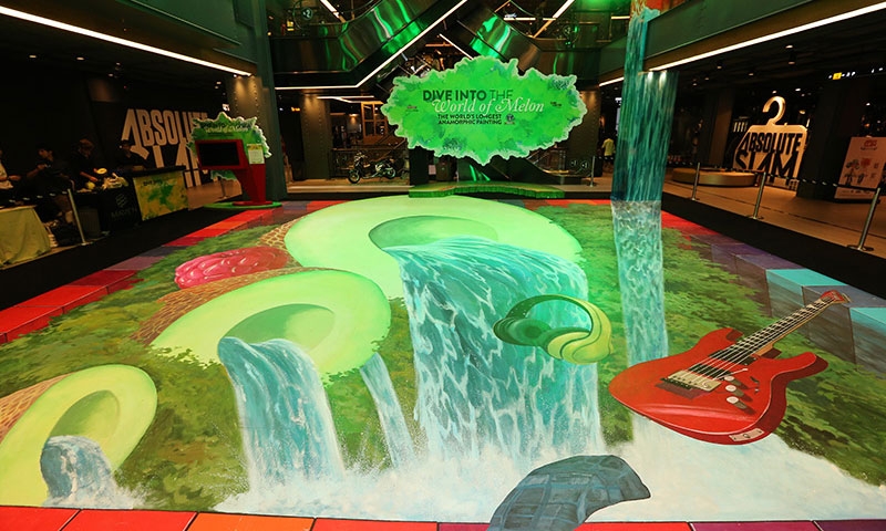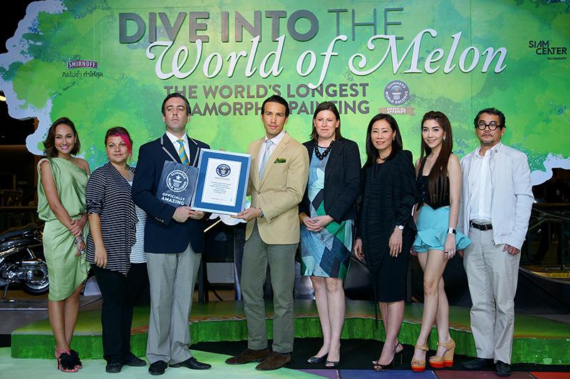 บริษัท ดิอาจิโอ โมเอ็ท เฮนเนสซี (ประเทศไทย) จำกัด และบริษัท สยามพิวรรธน์ จำกัด ผนึกกำลังกันปลุกแรงบันดาลใจเพื่อคนรุ่นใหม่ ชวนคนไทยเปิดประสบการณ์การดำดิ่งสู่สัมผัสแห่งจินตนาการล้ำลึก เนรมิตสยามเซ็นเตอร์ให้กลายเป็นผลงานศิลปะสามมิติน้ำตกรูปเมลอนที่พรั่งพรูด้วยไอเดียแห่ง Generation Y ภายใต้ชื่อ “DIVE INTO THE WORLD OF MELON” ทุบสถิติ “ภาพวาดสามมิติที่ยาวที่สุดในโลก” บันทึกสถิติโดย GUINNESS WORLD OF RECORDS ด้วยความยาวรวม 164 เมตร ณ สยามเซ็นเตอร์ รังสรรค์โดยศิลปินภาพวาดสามมิติระดับโลก เมลานี สติมเมลล์ ฟาน ลาทัม