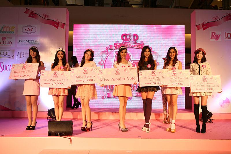 ซึ่งสาวหวานที่ชนะเลิศคว้าตำแหน่ง Ray Idol Search 2013 ได้แก่ ซาร่าห์ สายสกุลเศรษฐ์ รับเงินรางวัลมูลค่า 30,000 บาทพร้อมขึ้นปก นิตยสาร Ray พร้อมรางวัล Miss Colorful Wow Girl by Just Modern รับเงินรางวัลมูลค่า 20,000 บาท, รองชนะเลิศอันดับ 1 ได้แก่ MaMu-Mamu Maeda รับเงินรางวัลมูลค่า 10,000 บาท พร้อมรางวัล Miss BB Clinic รับเงินรางวัลมูลค่า 20,000 บาท, รองชนะเลิศอันดับ 2 ได้แก่ หมิว-รัญชิดา ศรีชนะ, แจน-เจตสภา เครือแตง พร้อมรางวัล Miss Besuca รับเงินรางวัลมูลค่า 20,000 บาท และแป้ง-พิจิตรา กองสอน รับเงินรางวัล 5,000 บาท พร้อมรางวัล Miss Beauty idol by ID-OL รับเงินรางวัลมูลค่า 20,000 บาท, YU-ME Princess by YU-ME COLLAGEN ได้แก่ แพรว-ธันยาพร บุญกำเชียง รับเงินรางวัลมูลค่า 20,000 บาท, ViVi Princess 2013 ได้แก่ นัท-ณัตญา คุณชัยประเสริฐ รับเงินรางวัลมูลค่า 20,000 บาท และ Miss Popular Vote ได้แก่ เบลล์-นวลแพร สิงห์ทน พร้อมรับรางวัลจากผู้สนับสนุน