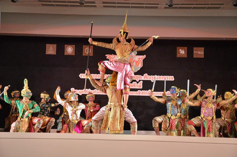 ท่านผู้หญิงจรุงจิตต์ ทีขะระ ในฐานะประธานคณะกรรมการอำนวยการจัดแสดงฯ กล่าวว่า สมเด็จพระนางเจ้าสิริกิติ์ พระบรมราชินีนาถ และสมเด็จพระเทพรัตนราชสุดาฯ สยามบรมราชกุมารี ทรงพระกรุณาโปรดเกล้าฯให้จัดสร้างเครื่องแต่งกายโขน-ละครขึ้นใหม่ รวมทั้งศิลปะการแต่งหน้าสำหรับการแสดงนาฏกรรม เพื่อใช้กับการแสดงพระราชทาน ซึ่งเป็นการฟื้นฟูงานช่างฝีมือหลากหลายสาขา อาทิ ช่างทำหัวโขน ช่างปักสะดึงกรึงไหม และช่างเงินช่างทอง โดยได้นำมาใช้ในการแสดงโขนรามเกียรติ์ ของมูลนิธิส่งเสริมศิลปาชีพฯมาตลอด ซึ่งปรากฏว่าได้รับการตอบรับจากผู้ชมดีเกินคาด สำหรับในปีนี้ ได้เลือกชุด ศึกกุมภกรรณ ตอน “โมกขศักดิ์” มาจัดแสดง จึงจะจัดแสดงยาวนานที่สุดเท่าที่เคยจัดมา