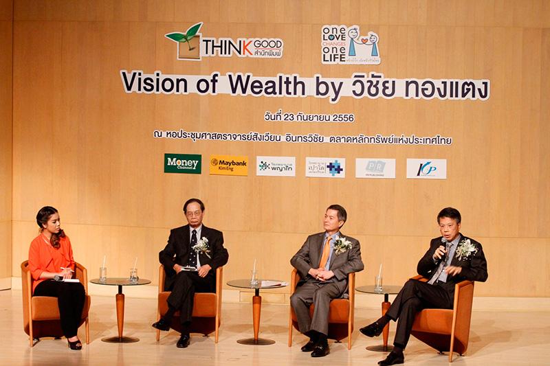 สำนักพิมพ์ Think Good ภายใต้ บริษัท พีอาร์ พับลิชชิ่ง จำกัด ร่วมกับมูลนิธิ “One Love Changes One Life” “หนึ่งน้ำใจ...เพื่อหนึ่งชีวิตใหม่” จัดงานทอล์กโชว์ “วิชั่น ออฟ เวลธ์ บาย วิชัย ทองแตง” (Vision of Wealth by Wichai Thongtang) เผยยุทธศาสตร์การลงทุนในสไตล์เศรษฐีระดับประเทศให้แก่นักลงทุนที่สนใจ ณ หอประชุมศาสตราจารย์ สังเวียน อินทรวิชัย ตลาดหลักทรัพย์แห่งประเทศไทย โดยได้รับความสนใจจากนักลงทุนอย่างคับคั่ง