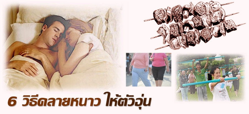 5. ออกกำลังกาย กรมอนามัยได้ออกมาพูดถึง การออกกำลังกายช่วงหน้าหนาวว่า ฤดูหนาวถือเป็นช่วงที่เหมาะที่จะออกกำลังกาย เพราะทำให้ไม่ค่อยเหนื่อย เป็นวิธีที่ดีได้ทั้งการคลายหนาวและได้ทั้งสุขภาพที่ดี เมื่ออากาศหนาว ร่างกายจะรู้สึกชาๆ เพราะเลือดมันเริ่มโดนความหนาวเข้ามาเกาะ ทำให้กระแสโลหิตเริ่มสูบฉีดช้าลง ดังนั้นการทำให้ร่างกายของเราได้รับความอบอุ่น ได้รับการคลายหนาวได้ เราต้องพยายามทำตัวให้ active อยู่เสมอ ทำให้การไหลเวียนของเลือดคล่องขึ้น ความร้อนในร่างกายก็จะสูงขึ้นเพื่อมาต้านความหนาวได้ ส่วนการออกกำลังกายนั้นก็มีหลายๆ วิธีที่ช่วยคลายหนาวได้ แล้วแต่ความชอบของแต่ละคนได้เลย จะเป็นกีฬากลางแจ้งหรือในร่มก็ไม่เกี่ยง ขอแค่ได้ออกกำลังกาย ก็จะทำให้ร่างกายเราอบอุ่นได้แล้ว